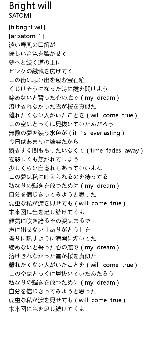 | [03:10.30] | 私なりの輝きを放つために(my dream) |