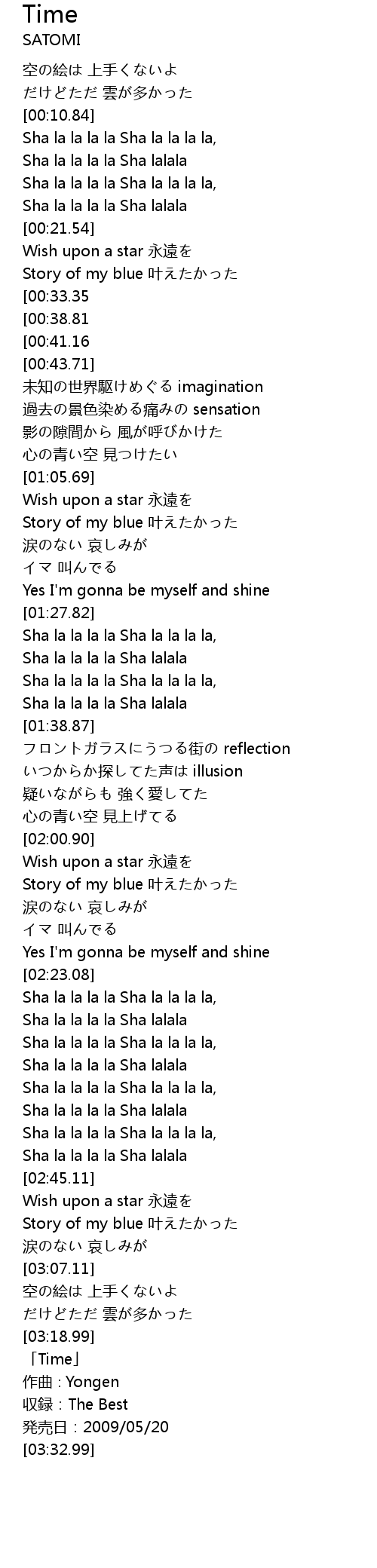 | [03:20.99] | 「Time」 |
