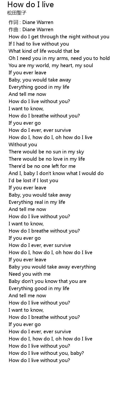| [01:20.028] | How do I, how do I, oh how do I live |