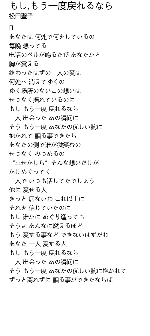 もし もう一度 戻れるなら |