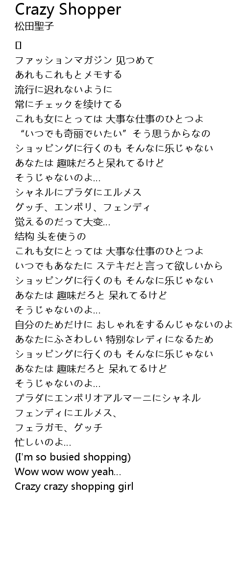 | Song | Crazy Shopper |