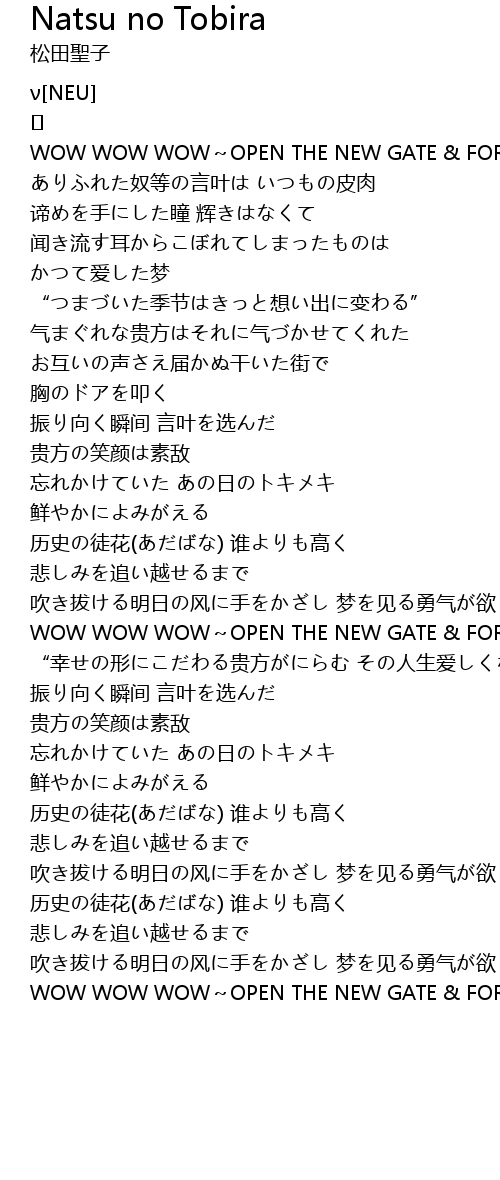 | 吹き拔ける明日の风に手をかざし 梦を见る勇气が欲しい | |