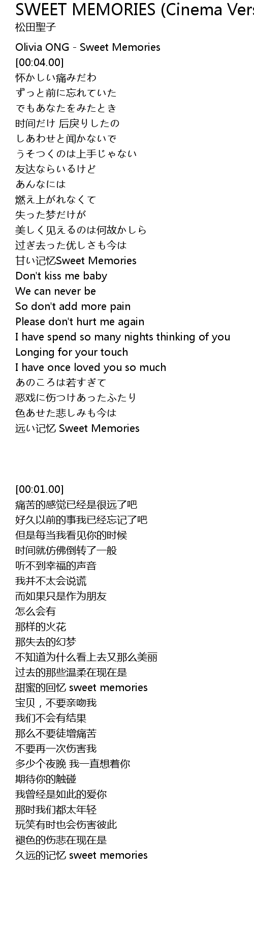 | [00:01.00] | Olivia ONG - Sweet Memories |