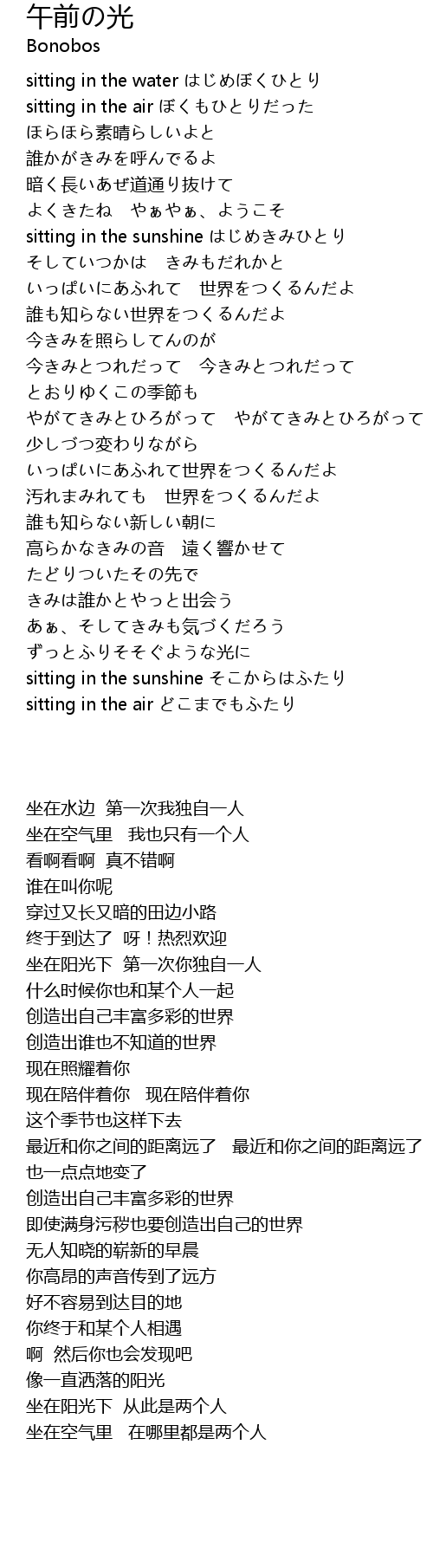 | [01:08.22] | sitting in the sunshine はじめきみひとり |