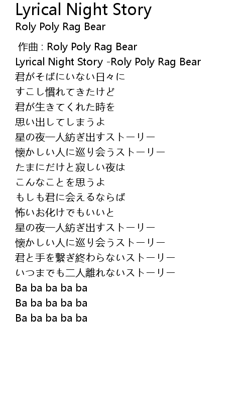 | [00:00.00] | Lyrical Night Story Roly Poly Rag Bear |