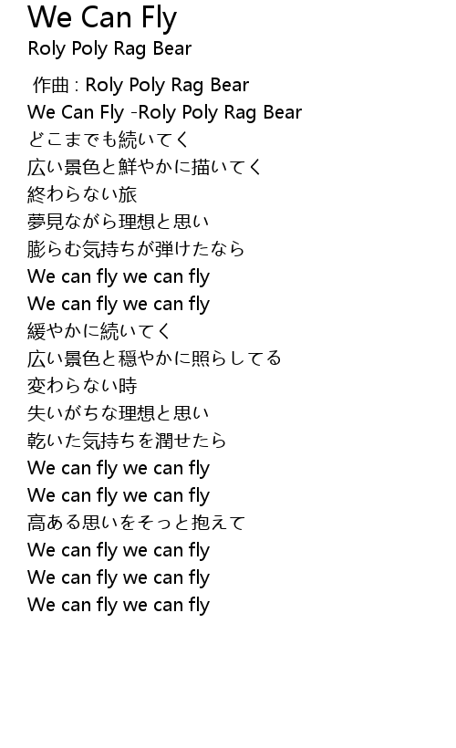 | [00:00.515] | We Can Fly -Roly Poly Rag Bear |