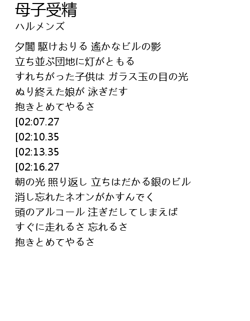 | [02:19.27][02:07.27][01:24.52][00:42.96] | 産み落とせ 街の落とし子 |