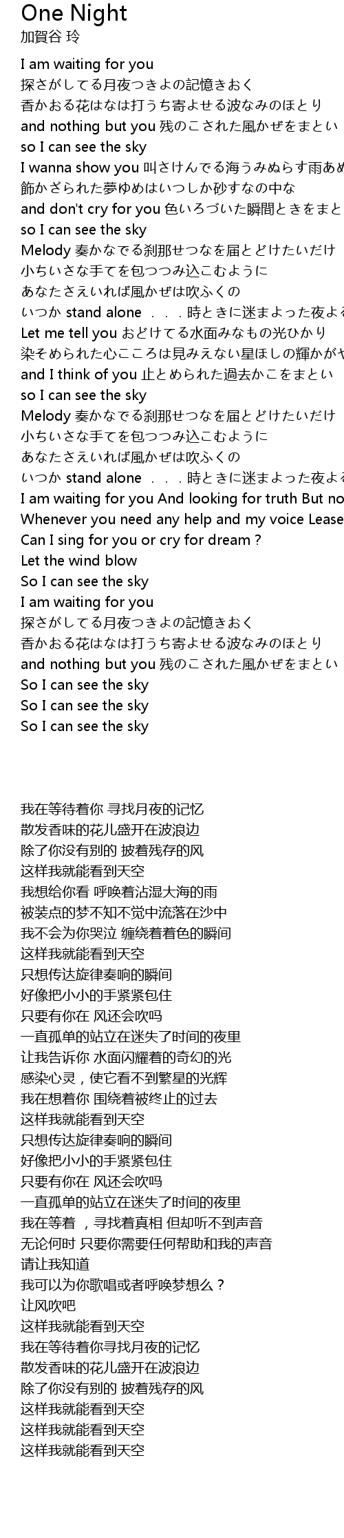 | [02:43.450] | I am waiting for you And looking for truth But not a sound is heard |