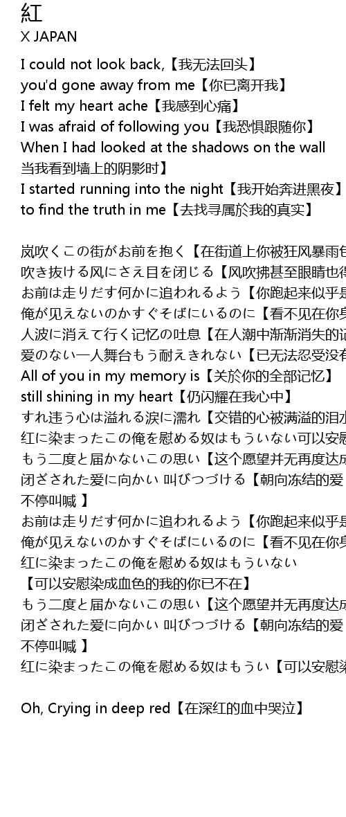 | Oh, Crying in deep red zài shēn hóng de xuè zhōng kū qì |