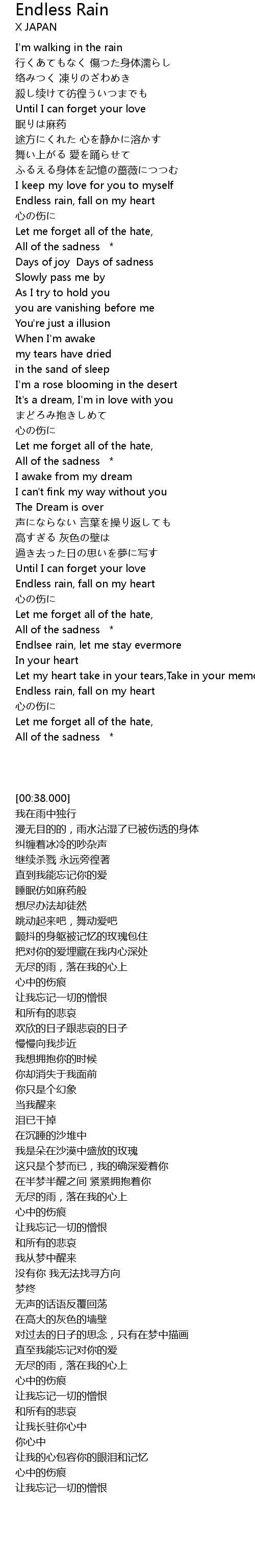 | [05:30.760] | Endlsee rain, let me stay evermore |