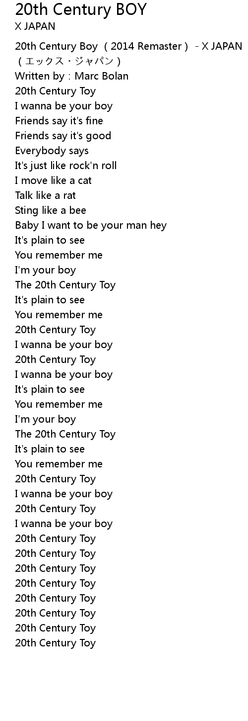 | [00:00.100] | 20th Century Boy 2014 Remaster X JAPAN |
