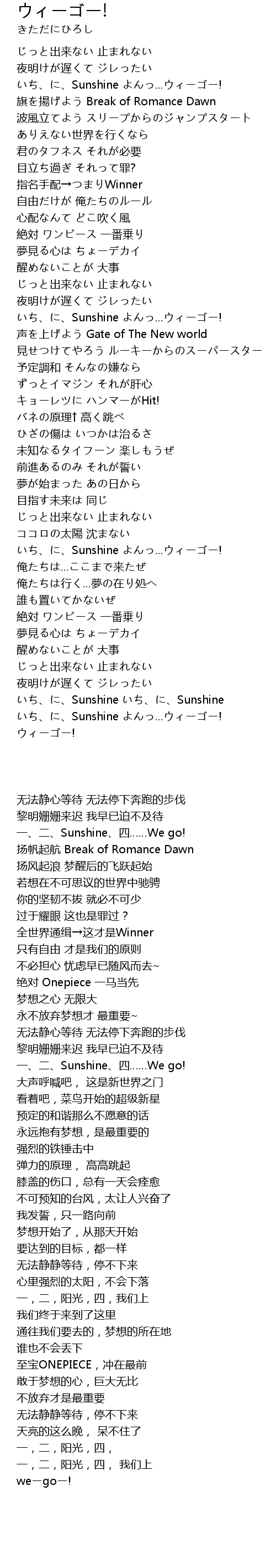 | [01:34.420] | いち、に、Sunshine よんっ...ウィーゴー! |