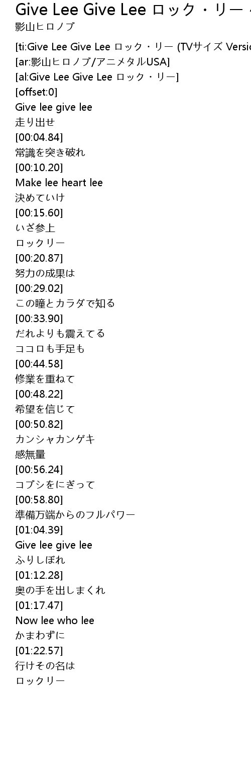 | [ti:Give Lee Give Lee ロック・リー (TVサイズ Version)] | |