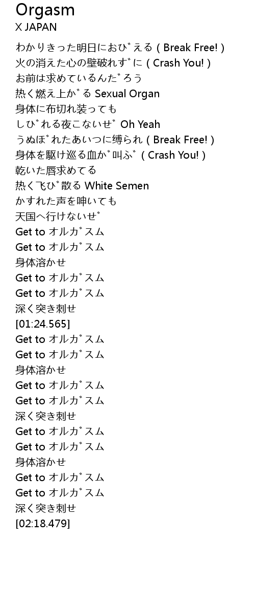 | [02:00.094] | Get to オルガスム |