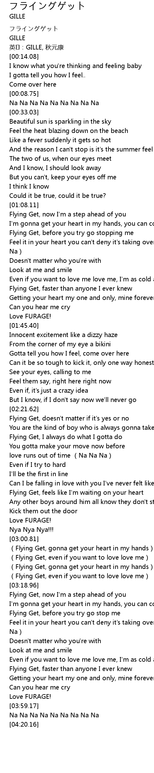 | [03:04.21] | (Flying Get, gonna get your heart in my hands) |