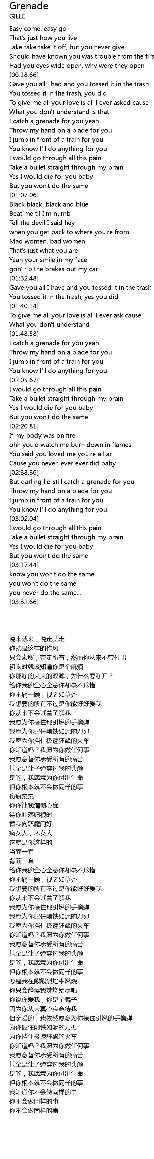 | Song | Grenade |