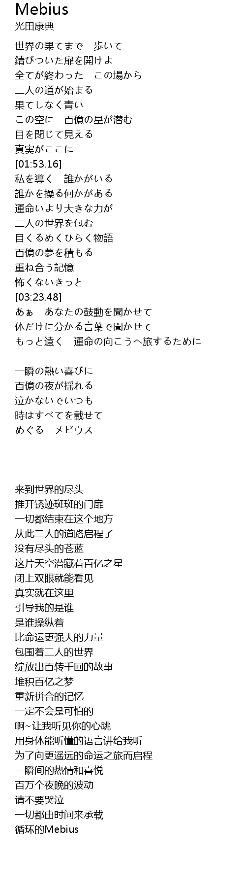 | [06:00.91] | めぐる メビウス |