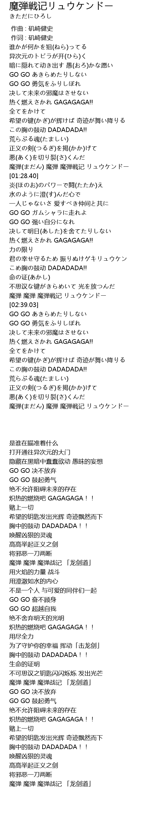 | [02:27.87] | 魔弾 魔弾 魔弾戦记 リュウケンドー |