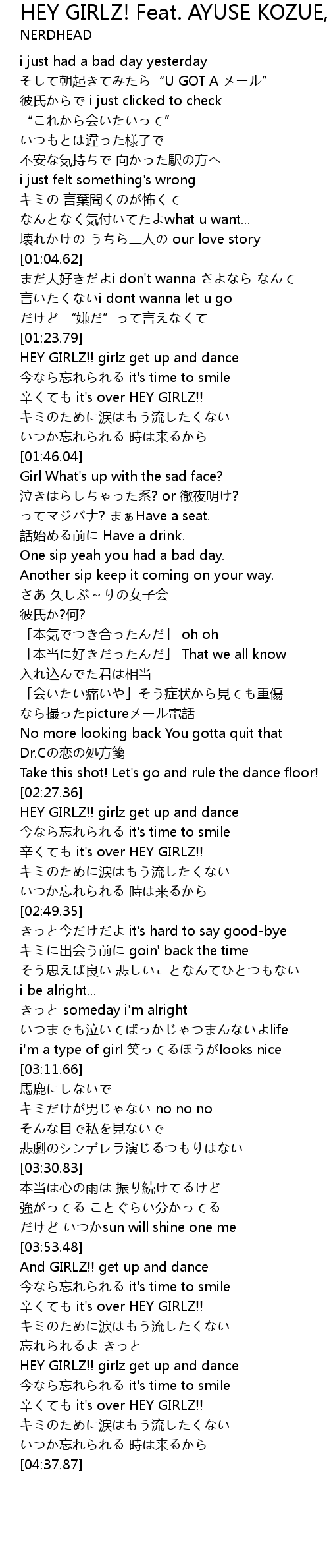 | [04:22.88] | 辛くても it's over HEY GIRLZ!! |