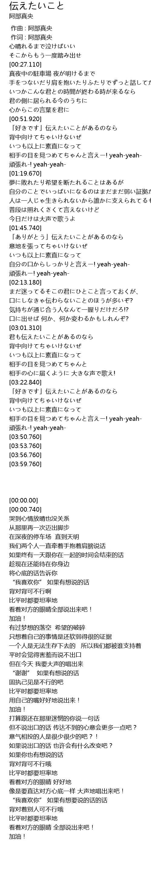 | [00:00.740] | 作词 : 阿部真央 |