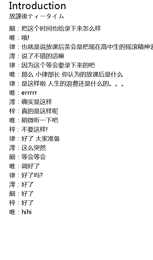 | [00:05.55] | 律:也就是说放课后茶会是把现在高中生的摇滚精神表现出来的乐队吧 |