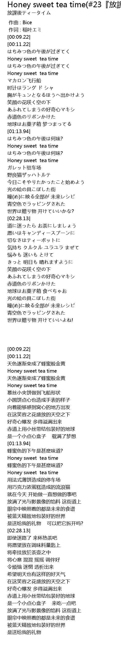 | Song | Honey sweet tea time(#23『放課後!』Mix) |