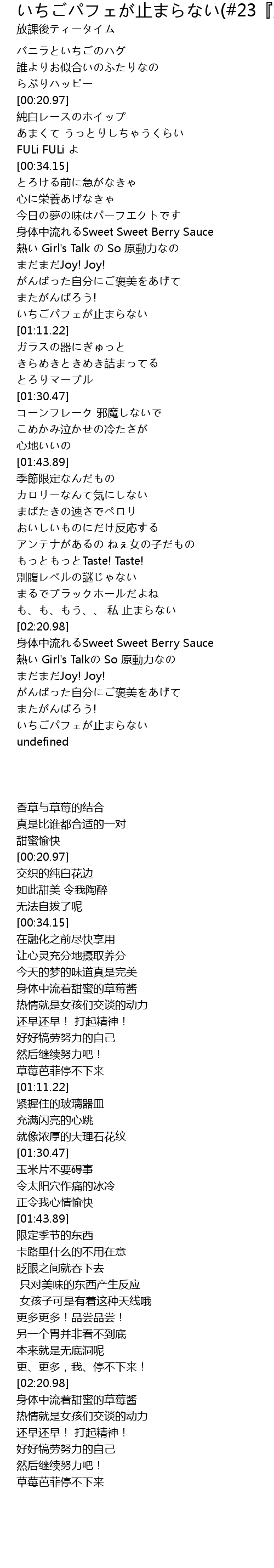 | [00:47.90] | 身体中流れるSweet Sweet Berry Sauce |