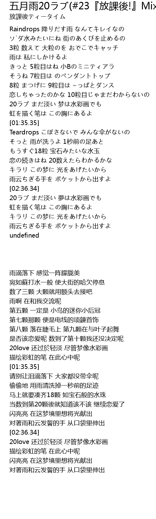 | [01:47.61] | Teardrops こぼさないで みんな伞がないの |