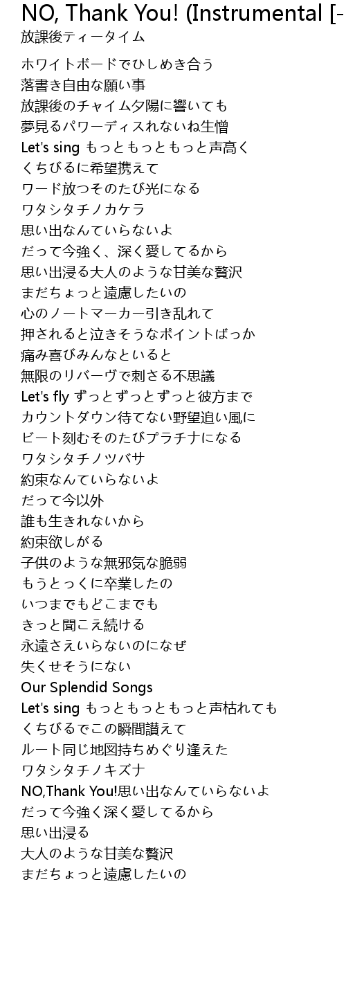 | [03:40.494] | NO,Thank You!思い出なんていらないよ |