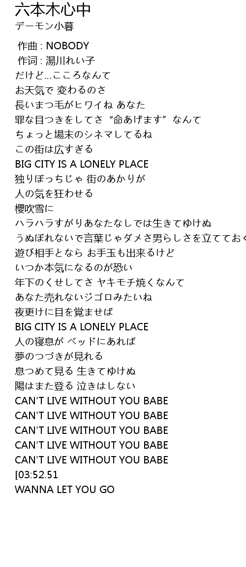 | [00:52.63] | BIG CITY IS A LONELY PLACE |
