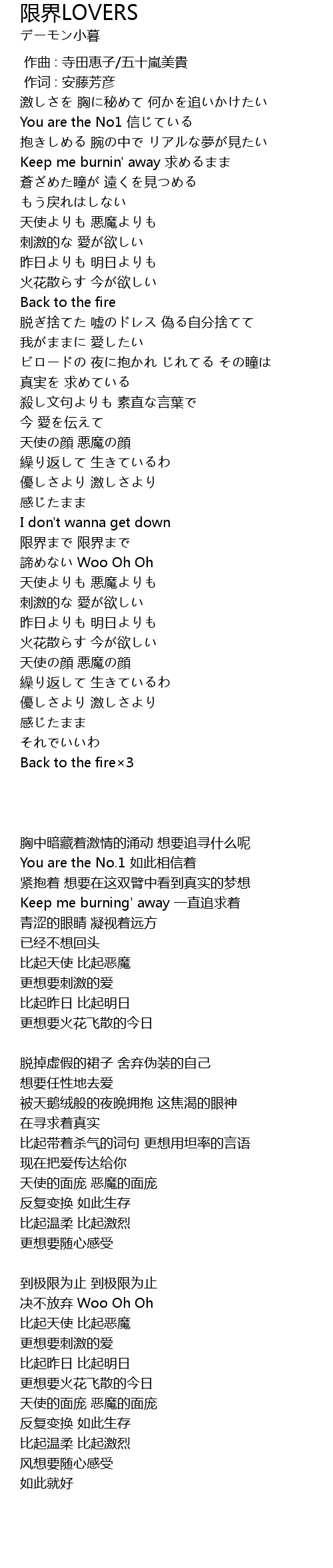 | [03:35.93] | Back to the fire×3 |