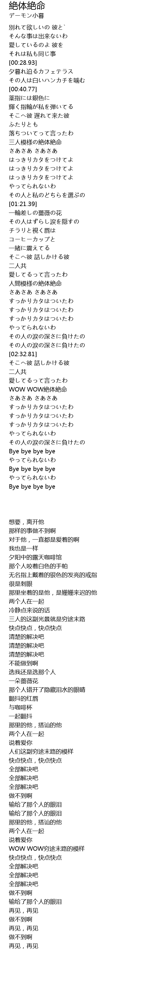 | [02:57.78] | WOW WOW jué tǐ jué mìng |