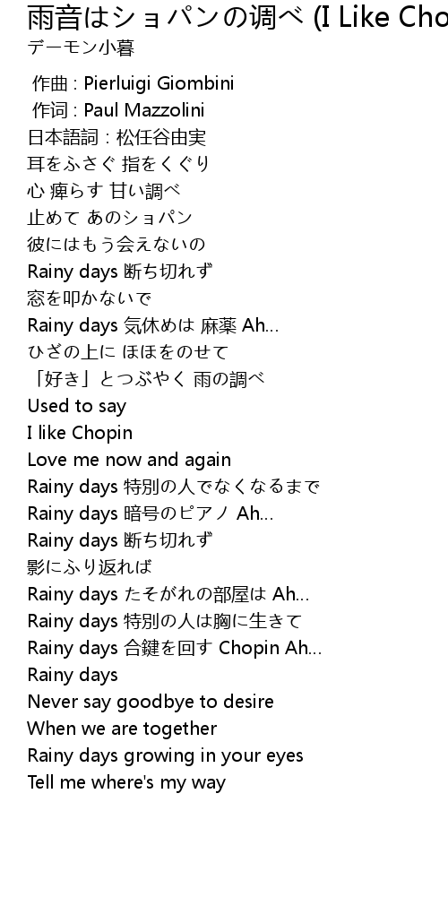 | [03:04.14] | Rainy days 合鍵を回す Chopin Ah… |