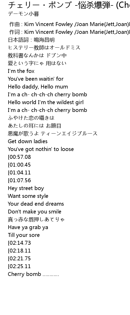 | [02:32.37][02:18.11] | I' m a ch chchch cherry bomb |