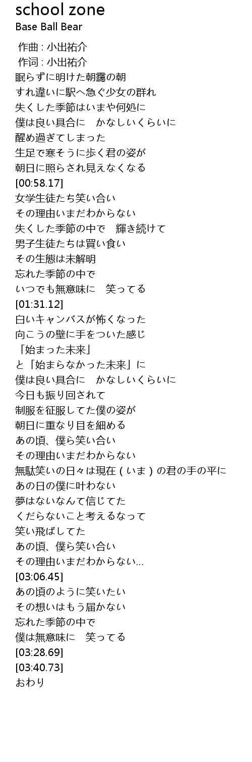 | [00:01.00] | 作词 : 小出祐介 |