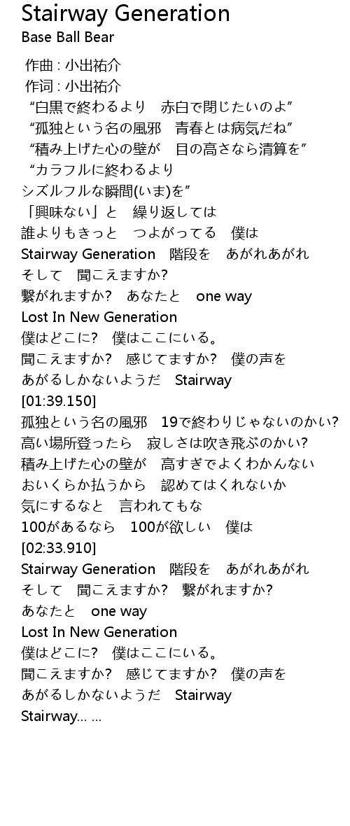| [02:35.120] | Stairway Generation 階段を あがれあがれ |