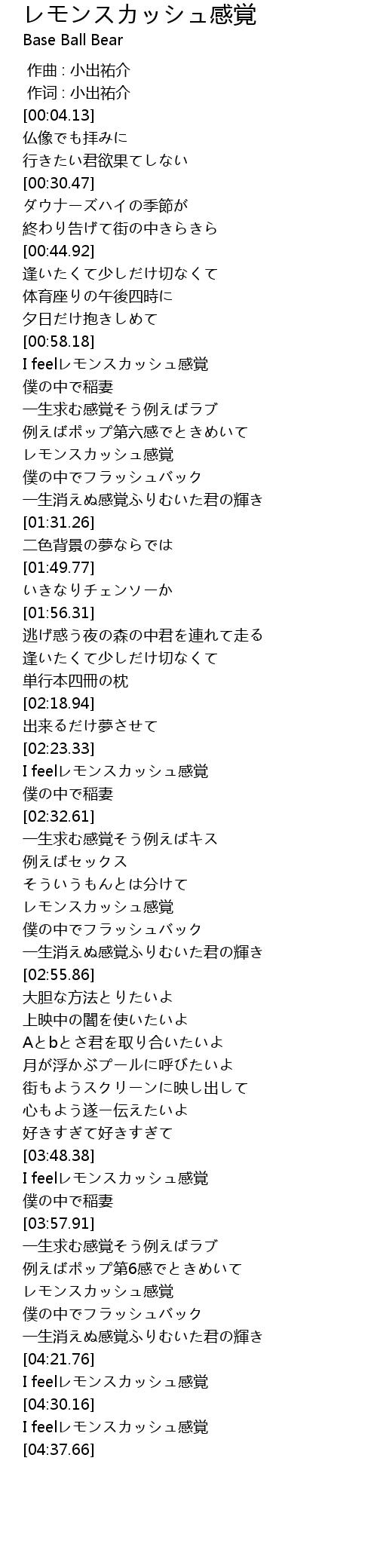 | [03:50.87] | I feelレモンスカッシュ感覚 |