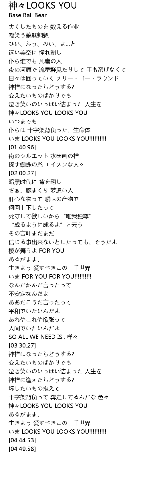 | [04:13.51] | 神々LOOKS YOU LOOKS YOU |