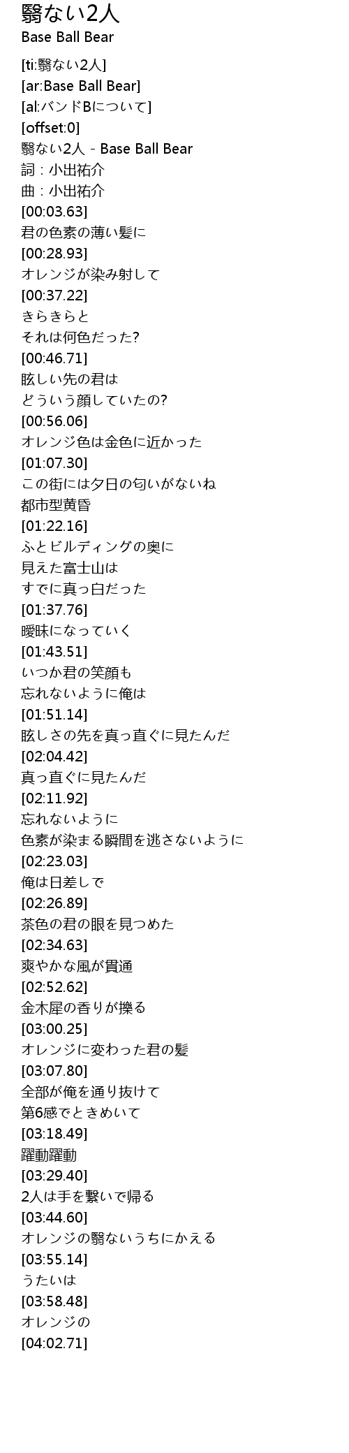 | [00:00.10] | 翳ない2人 - Base Ball Bear |