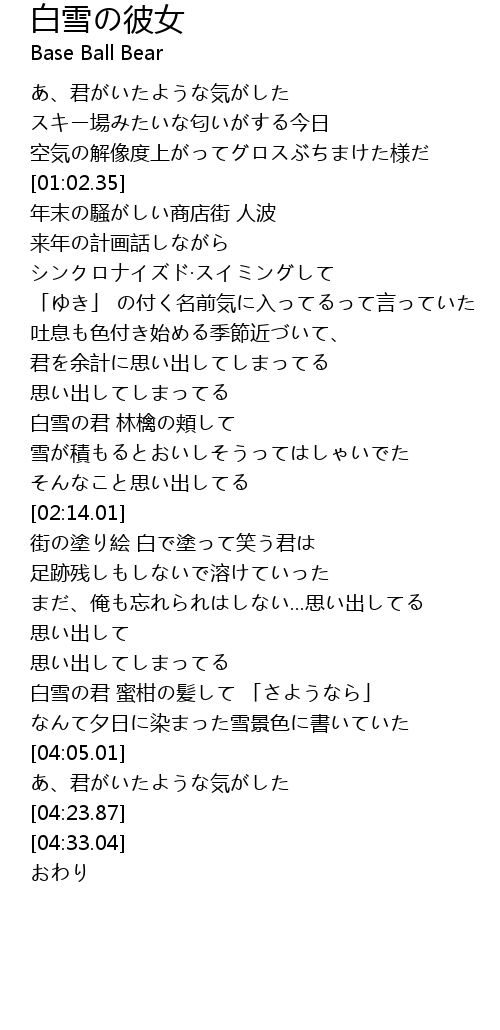 | [03:40.44] | 白雪の君 蜜柑の髪して 「さようなら」 |