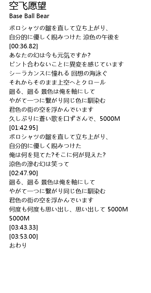 | [03:02.74] | 君色の街の空を浮かんでいます |