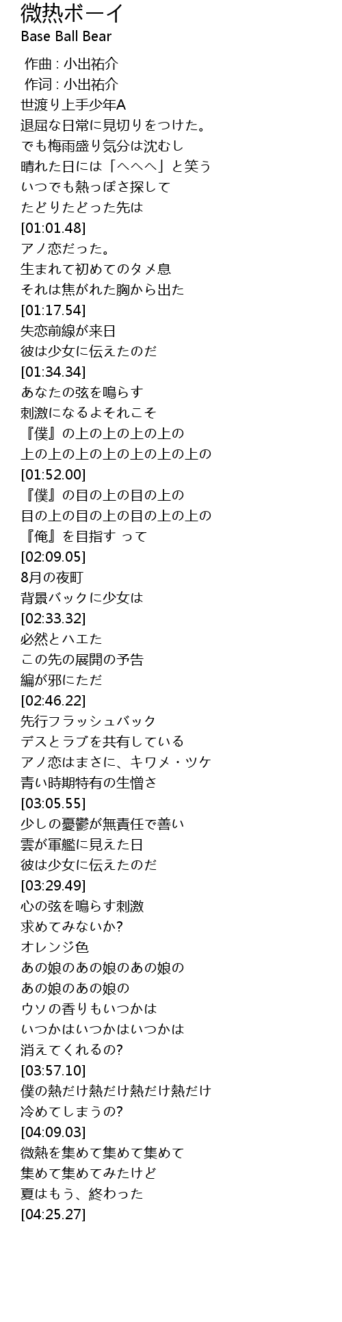 | [00:01.00] | 作词 : 小出祐介 |