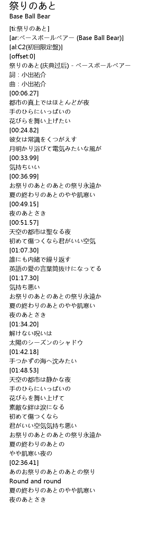 | [00:00.04] | 祭りのあと(庆典过后) - ベースボールベアー |