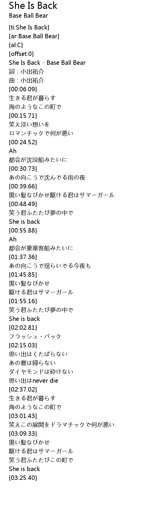 | [00:00.57] | She Is Back - Base Ball Bear |