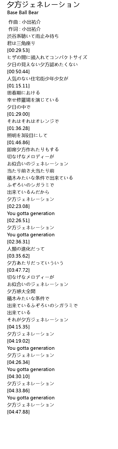 | [04:30.82] | 夕方ジェネレーション |
