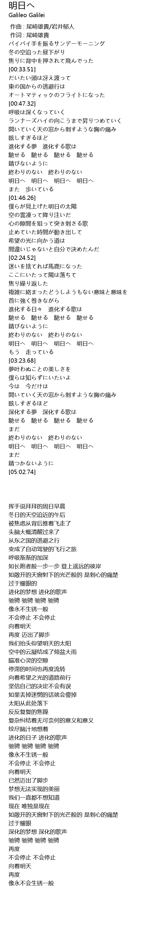 | [01:38.41] | 明日へ 明日へ 明日へ 明日へ |