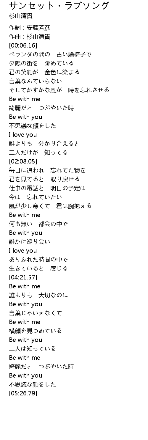 | [05:01.59] | Be with you |