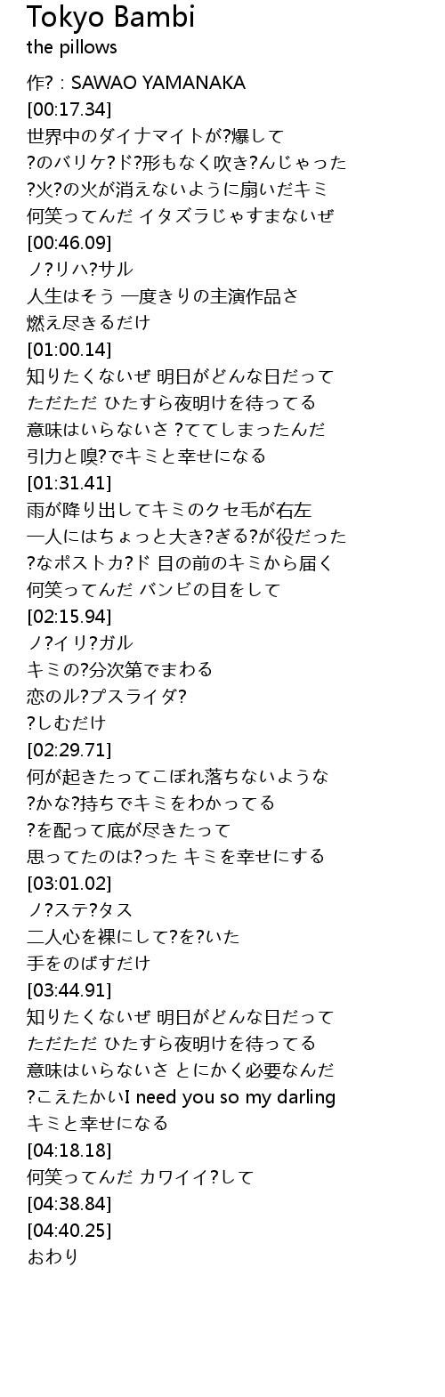| [00:11.34] | 作?:SAWAO YAMANAKA |