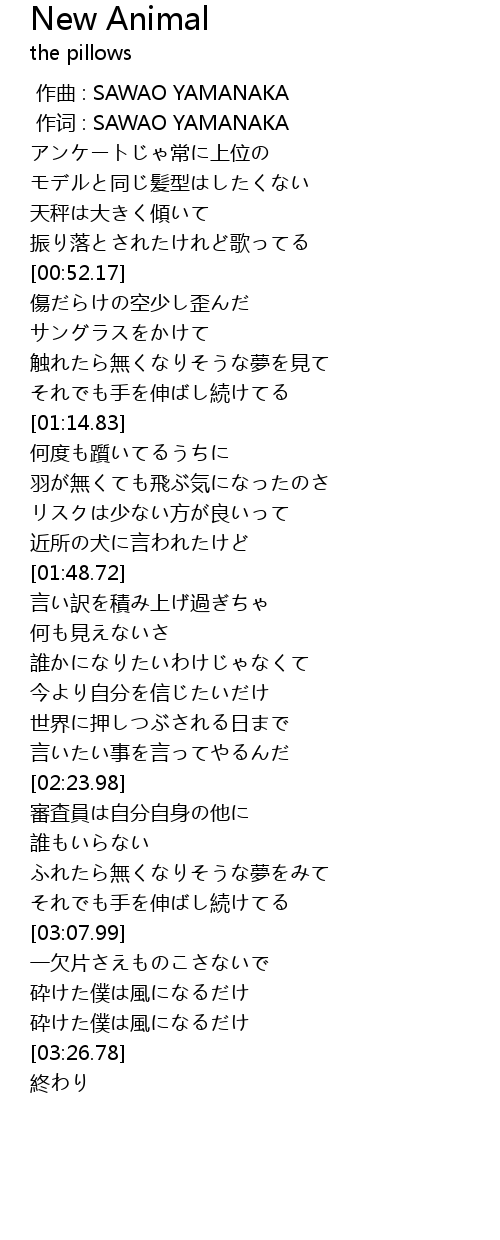 | [03:20.43] | 砕けた僕は風になるだけ |