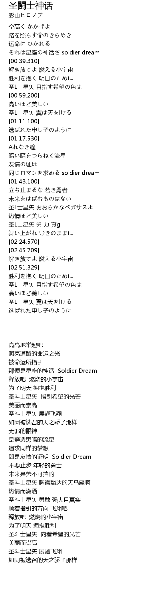 | [00:33.140] | それは星座の神话さ soldier dream |